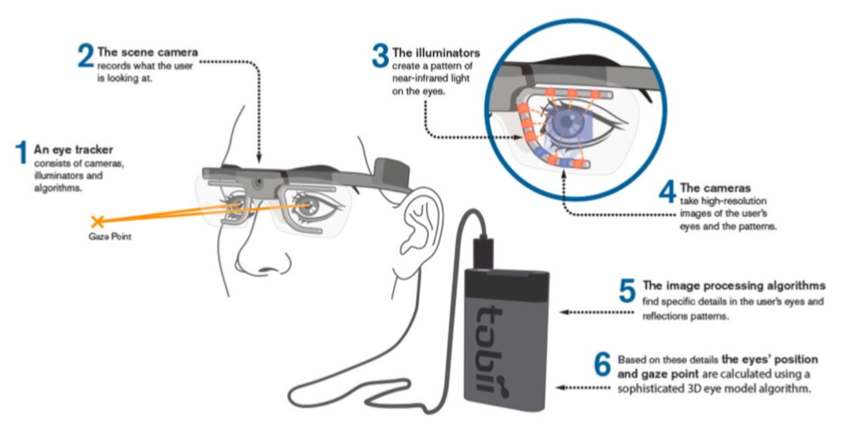Egy különleges szemüveg kamerája az utat, egy érzékelője pedig a szemedet figyeli. Az eredmény egy olyan videó ami a látóteredet, rajta egy kis ponttal pedig a szemed mozgásodat mutatja.
